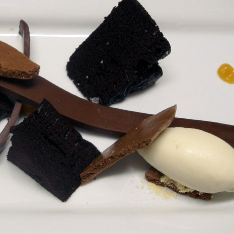 Chocolate Fudge Cake, Hazelnut, caramel, chocolate truffle, white chocolate mousse, dulce de leche gelato